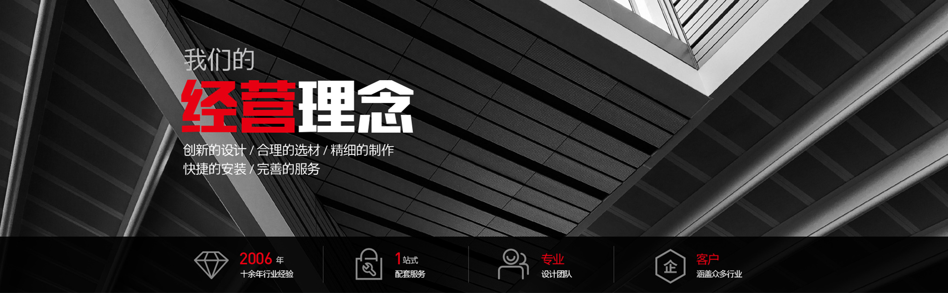 誠信是我們賴以生存的根本。創(chuàng)新的設計,合理的選材,精細的制作,快捷的安裝,完善的服務是我們也就不變的經(jīng)營理念。我們竭誠為您提供中******,個性化,創(chuàng)意性的作品,我們不斷進取,努力今天的同時也在發(fā)展未來,期待與您結(jié)成事業(yè)上的好伙伴,共圖發(fā)展!
